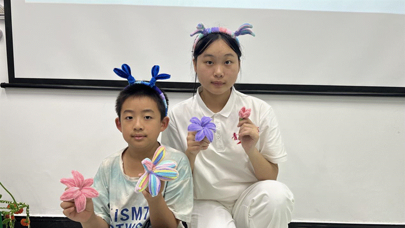 2024年7月8日,重庆电子科技职业大学智能制造与汽车学院青春知行团“智绘梦之队”前往永川区中山路街道红河社区,开展“巧手编织传文化,簪花绽放续传统”手作艺术活动。让孩子们在欢乐的氛围中学习和传承中国优秀的传统文化,感受中国传统文化的魅力和价值,培养孩子们争做传统文化的传承人和传播者。