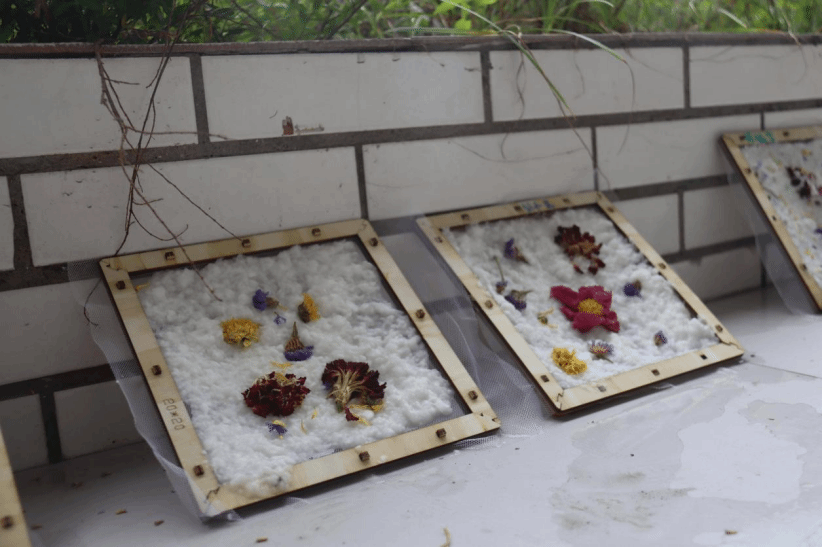 互动实验演示环节里,实践队员熟练操作工具,完整展示 “捣浆成絮、抄纸为帘、晾晒成章” 的古法造纸流程。原本普通的碎纸在手中渐成细腻纸浆,经抄纸动作均匀铺展于帘上,最终晾晒为洁白纸张。奇妙的转化过程引得小朋友们阵阵惊叹,直观感受着传统技艺的精妙。