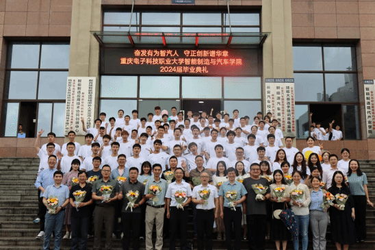 为进一步推动学习贯彻习近平新时代中国特色社会主义思想主题教育走深走实,学习贯彻党的二十大精神,培养毕业生的感恩之心,上好最后一堂思政课。6月27日下午,重庆电子科技职业大学智能制造与汽车学院 “奋发有为智汽人,守正创新谱华章”2024年毕业典礼在16栋一楼大厅举行。重庆电子科技职业大学副校长刘成俊出席毕业典礼,学校各职能部门负责人,学院党总支书记、院长、教师代表和毕业班辅导员(班主任)、及2024届毕业生代表参加。