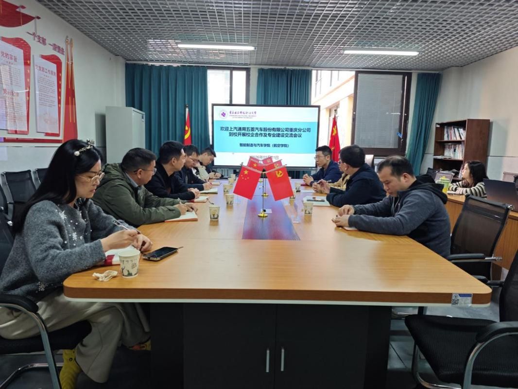 为深化产教融合、精准对接汽车产业人才需求,2026年3月11日,上汽通用五菱汽车股份有限公司重庆分公司党群科经理贾玉龙一行到访重庆电子科技职业大学智能制造与汽车学院(航空学院),开展校企合作洽谈与专业建设交流活动。学院党总支书记丁伟、汽车工程系主任罗杰、及汽车专业骨干教师参加座谈。