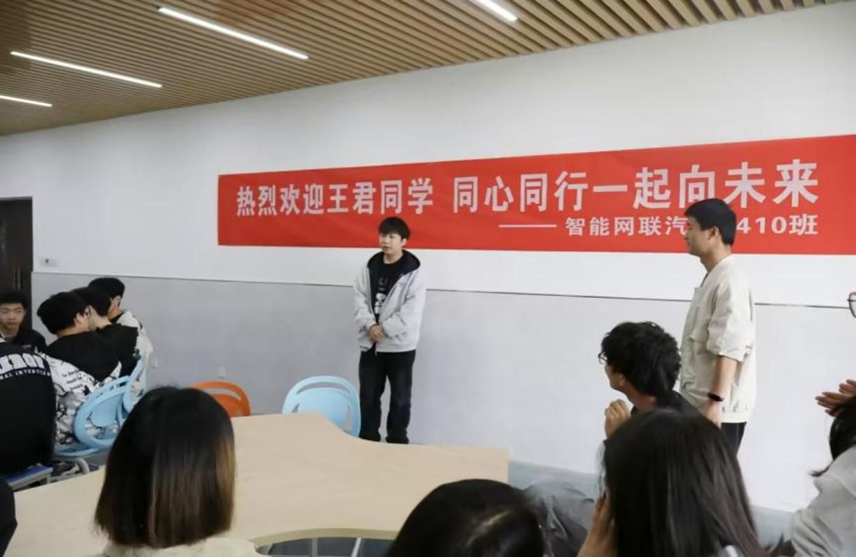 活动伊始,新同学王君结合智能网联汽车专业学习规划与大学生活期待作自我介绍,班级同学热情回应,分享班级情况、专业学习要点及校园生活经验,助力新同学快速适应。