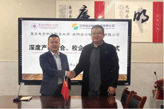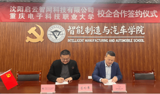 为深度产教融合,推动智能制造领域的人才培养与科研创新,4月 2 日上午,沈阳启云智网科技有限公司与重庆电子科技职业大学智能制造与汽车学院在致远楼228举行校企捐赠签约仪式。公司向学院捐赠价值 183 万元的科研实验台及全套场景资源库。公司总经理谢尚飞与学院副院长王勇签署捐赠协议。
