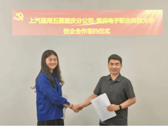 2025年9月17日,重庆电子科技职业大学智能制造与汽车学院(航空学院)党总支副书记丁伟率队赴上汽通用五菱重庆分公司,双方举行校企合作签约仪式。仪式上,学院院长助理张俊峰代表校方,与上汽通用五菱重庆分公司人事行政区域人事管理专员裴鑫共同签署合作协议,标志着双方在人才共育、产业赋能领域的合作正式启动。