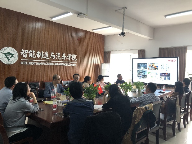 2021年3月30日上午,费德创新(重庆)科技文化有限公司(以下简称费德)总经理刘鸿一行携威图电子机械技术(上海)有限公司(以下简称威图)高级技术方案工程师、重庆办事处代表多名人员来智能制造与汽车学院进行校企合作交流。智能制造与汽车学院院长副院长叶勇、智能制造系主任吴春艳、自动化系主任吴德明、相关专业带头人参加了此次交流会。