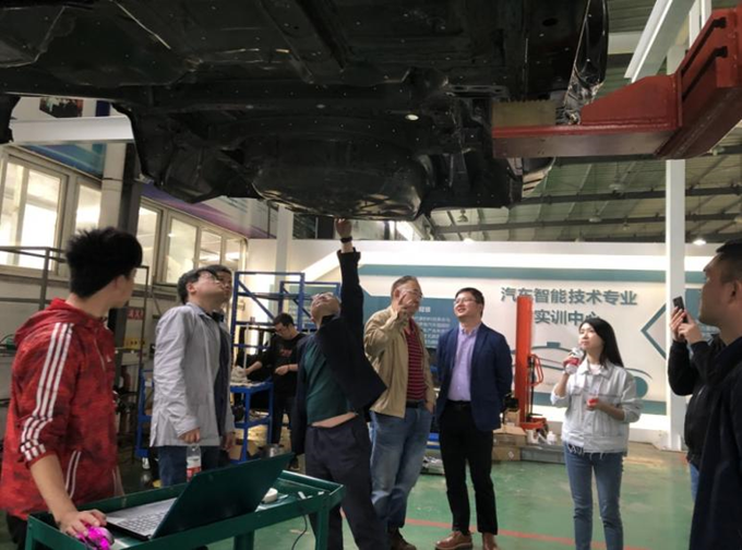 先进车型对标项目是我校张俊峰教授汽车设计工作坊团队与中国汽车工程研究院股份有限公司(以下简称中国汽研)、河钢集团有限公司(以下简称河钢集团)、重庆长安汽车股份有限公司(以下简称长安汽车)、重庆凯瑞汽车技术有限公司(以下简称凯瑞汽车)共同合作进行的科研服务开发项目。该项目主要包括装拆先进车型白车身,整车及部件三维数据采集、数据处理,模型数据逆向重建,该项目将为中国汽研后期车身对标提供前期重要的数据支撑。本次视察正处在整车拆解验证阶段,是项目启动以来第一个关键环节。