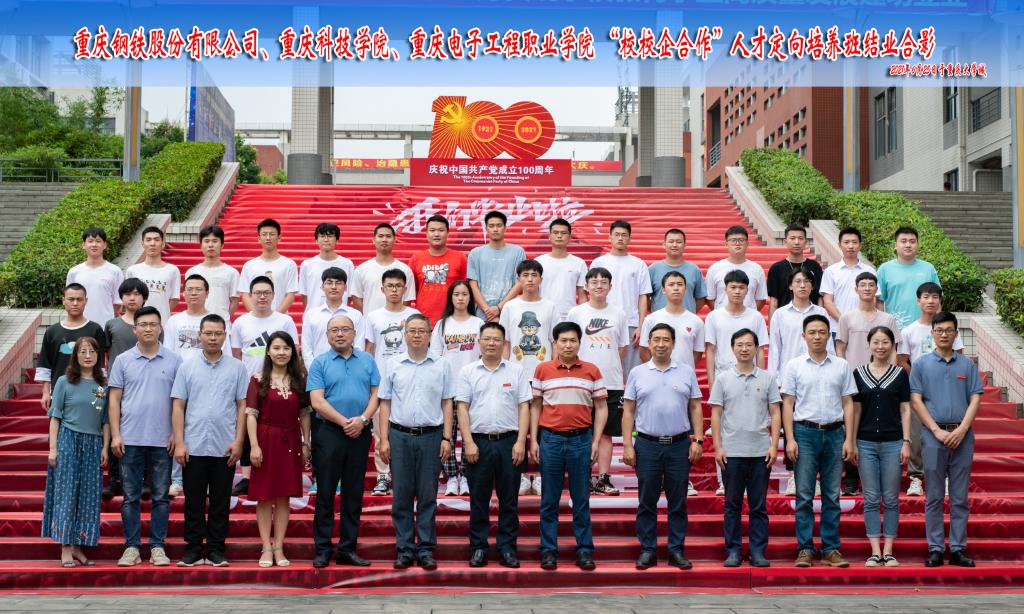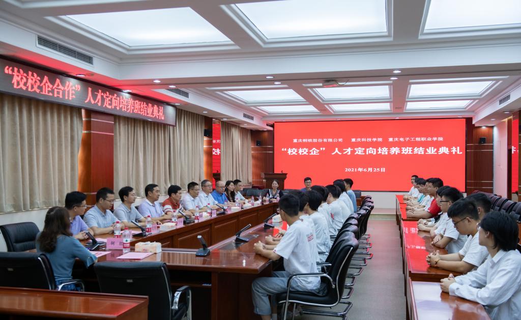 应重庆钢铁股份有限公司对技能人才的需求,重庆钢铁股份有限公司、重庆电子工程职业学院、重庆科技学院三方联合组建的第二批“校校企”人才定向培养班。在三方领导的重视和关心下,顺利完成了为期6个月的培训任务,于2021年6月25日下午在博润厅举办了结业典礼。