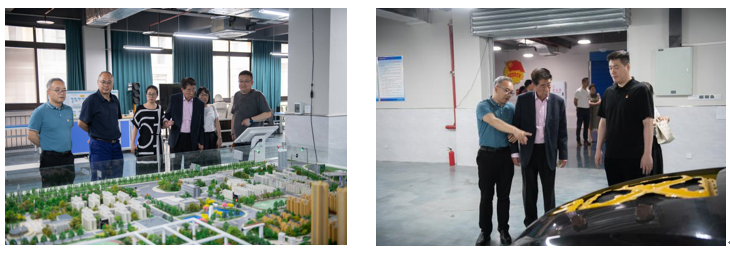 会后,邱仁士先生一行在严世同书记的陪同下参观了智能制造与汽车学院汽车制造和智能汽车网联技术实习实训基地,就具体合作项目进行详细的交流探讨。