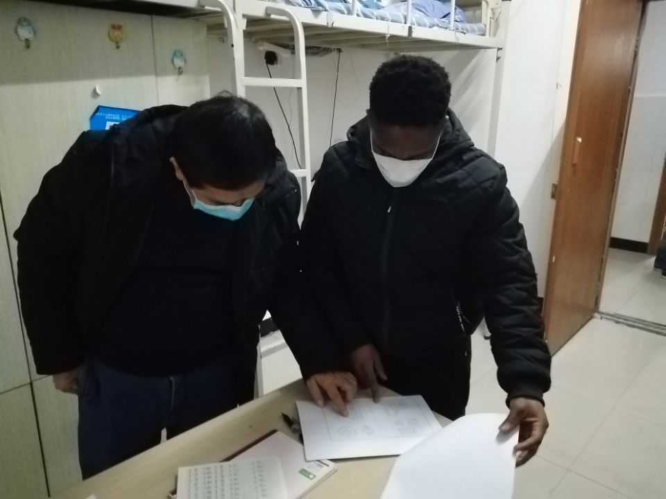 疫情发生以后,学校第一时间向留学生们通报了相关情况,发布了预防新冠病毒的方法,校领导慰问学生并向他们普及了新冠病毒的有关知识,稳定了学生情绪。后勤保障方面,假期专用食堂保障一日三餐,避免学生外出就餐,同时为每位留学生配备了一定数量的口罩。宿舍管理员每天对学生进行两次体温测量,密切关注学生身体状况,并安排专门人员每天对宿舍进行消毒杀菌。为避免学生着凉感冒,学校为每个留学生宿舍配备了电暖器,并向他们强调了安全使用注意事项。
