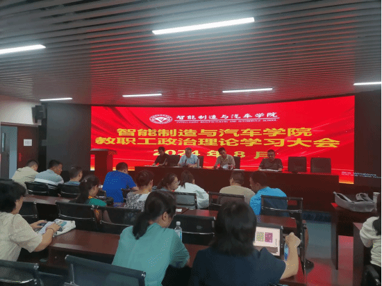 根据学校《关于做好2024年8月教职工政治理论学习的通知》(重电科大委宣〔2024〕4号)文件精神,2024年9月7日下午,智能制造与汽车学院在致远楼203会议室集中开展了8月份教职工政治理论学习。