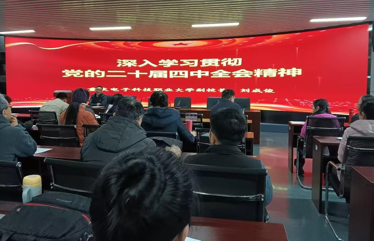 刘成俊副校长围绕党的二十届四中全会的重大意义、核心要义和实践要求,结合当前职业教育发展的新形势、新任务,以及学校“1235”党建工作思路,对全会精神进行了系统阐释和深入解读。他重点阐述了“十四五”时期我国发展取得的重大成就,以及“十五五”时期的发展目标与重点任务,强调要深刻把握教育、科技、人才一体推进的战略部署,主动服务新质生产力发展和现代化产业体系建设。