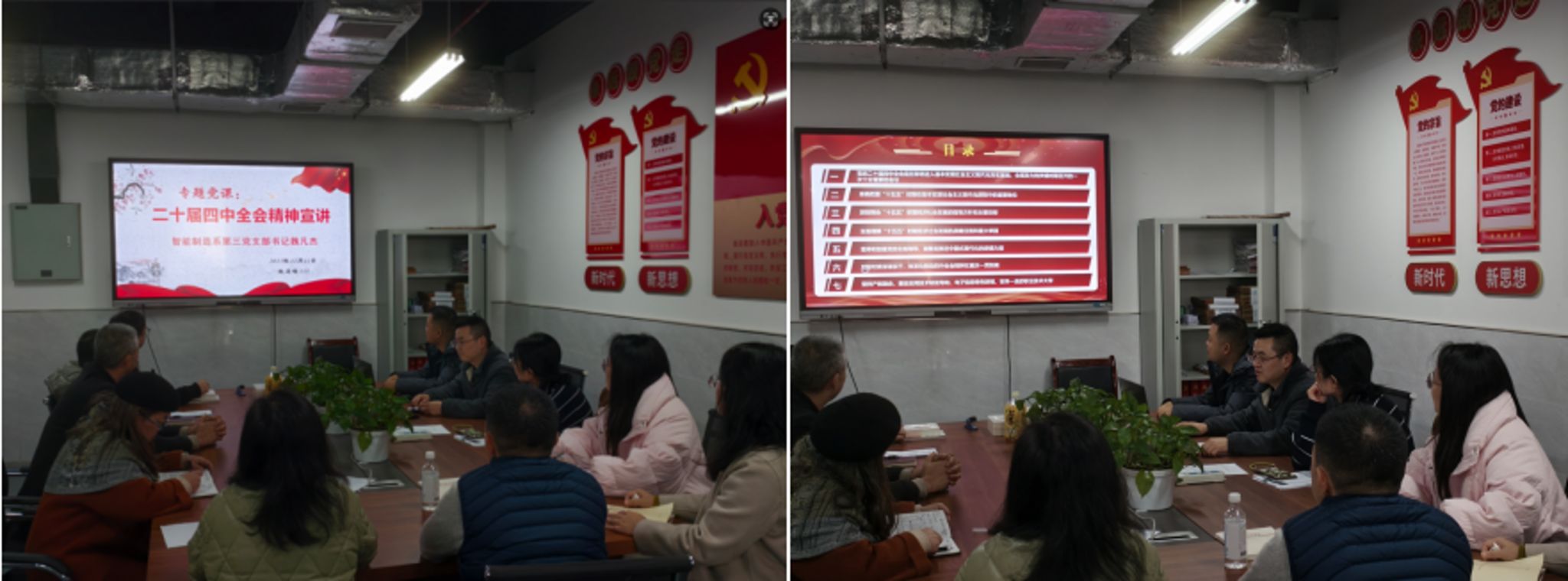 2025年12月11日12:40,党支部书记魏凡杰面向智能制造系第三党支部全体党员开展了“党的二十届四中全会精神”党课宣讲。