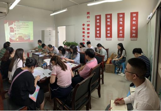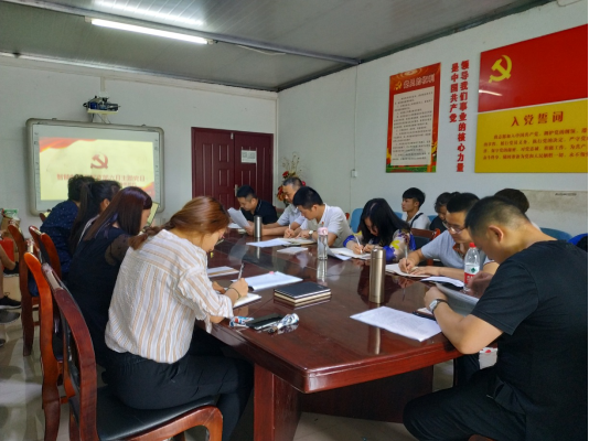 各支部党员佩戴党员徽章,悬挂党旗,交纳党费,认真学习《习近平新时代中国特色社会主义思想三十讲》第二十二讲内容——建设美丽中国,集中研读习近平总书记关于统一战线的相关论述,由支部书记领学中共中央办公厅印发《关于解决形式主义突出问题为基层减负的通知》,我们要以党的政治建设为统领加强思想教育,加强计划管理和监督实施,要完善问责制度和激励关怀机制。党总支委员分别参加了所在支部的主题党日活动并进行了领学,其中党总支书记罗永前领学《习近平谈治国理政》中的传统文化智慧——得众则得国,失众则失国,党总支副书记张进春同志领学习习近平总书记对弘扬爱国奋斗精神作出的系列重要指示,党总支副书记丁伟同志领学中共中央办公厅印发《党政领导干部考核工作条例》,党总支统战委员叶勇同志领学中共中央印发《中国共产党党员教育管理工作条例》,党总支组织委员李建平同志组织党员开展“七一”表彰支部党员评优评先活动。