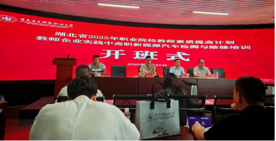 凝心聚力启新程,赋能职教促发展。近日,湖北省2025年高职教师企业实践新能源汽车检测与维修国家级培训在重庆电子科技职业大学致远楼203正式开班。重庆电子科技职业大学副校长叶勇教授,培训与继续教育中心主任莫绍强教授,项目负责人马良琳,教学班主任邓家彬及本期培训全体学员出席开班仪式。本次培训旨在提升高职教师在新能源汽车检测与维修领域的教学能力和实践水平,为职业教育高质量发展注入新动能。
